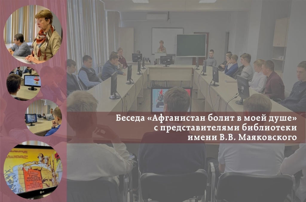 Представители библиотеки провели для студентов беседу «Афганистан болит в моей душе», в процессе которой рассказали ребятам о войне в Афганистане 1979 - 1989гг., её причинах, судьбе воинов-интернационалистов и о книгах, которые описывают эти трагические события.