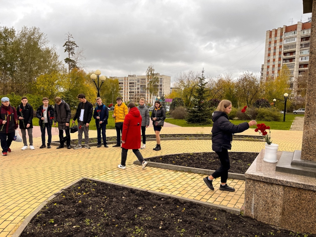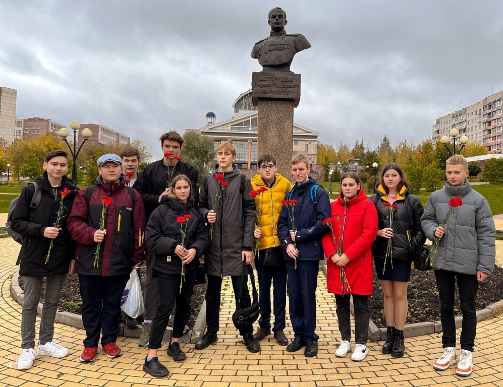 После линейки студенты возложили цветы к памятнику Б.Г.Музрукова.