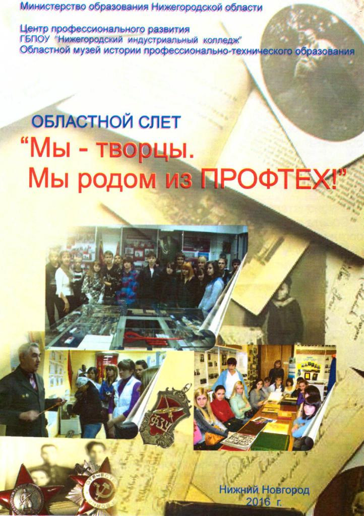 Были заслушаны мероприятия и программы реализация которых преследует своей целью не допустить фальсификацию истории и наследия Великой Отечественной Войны. Слет закончился подведением итогов областного конкурса «Мы- творцы. Мы родом из Профтех!». Студенты группы ТТ2-29 Максим Барабаренко и Максим Куликов получили дипломы министерства Нижегородской области за активную поисковую и исследовательскую деятельность.