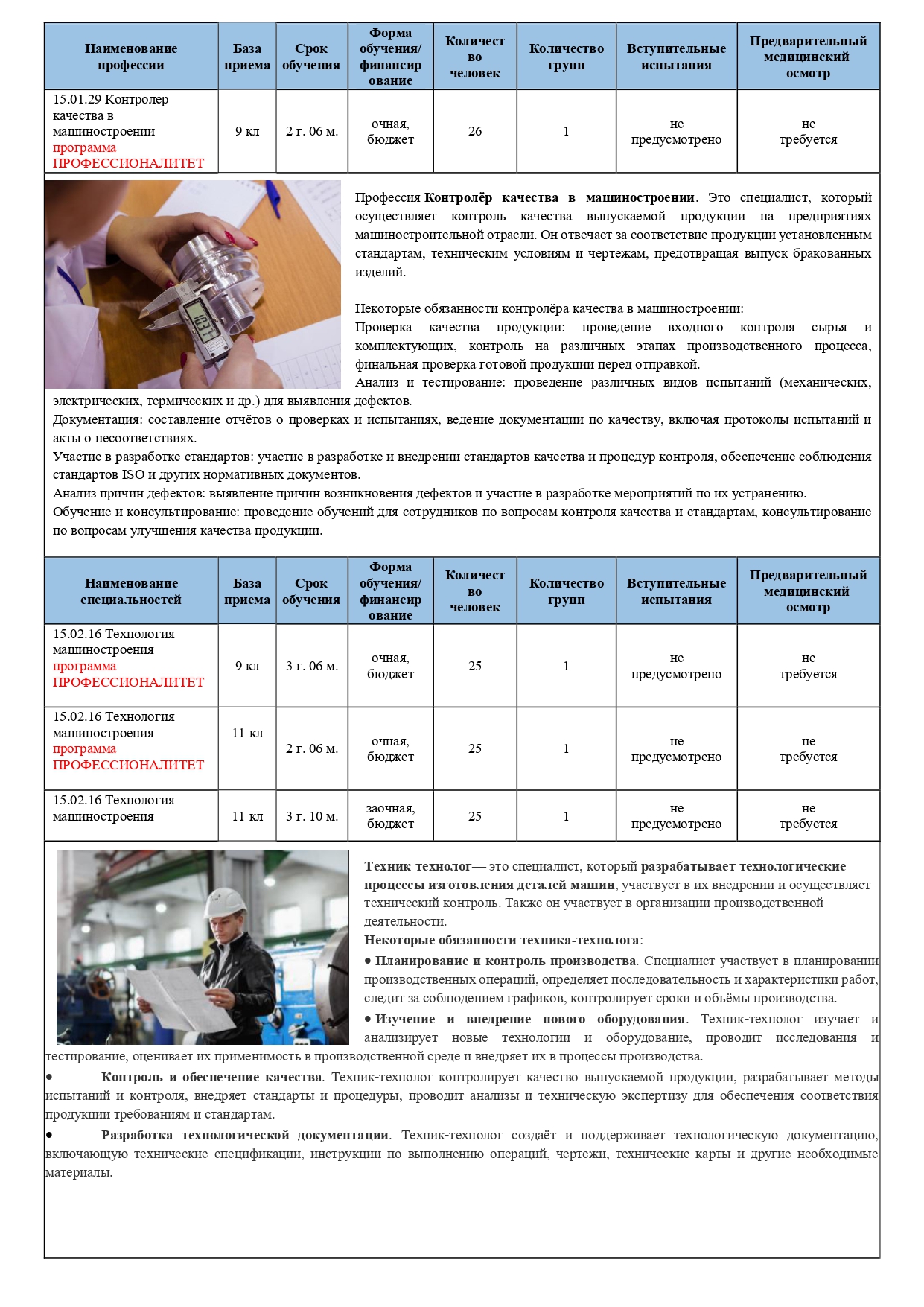 15.01.29 Контролер качества в машиностроении