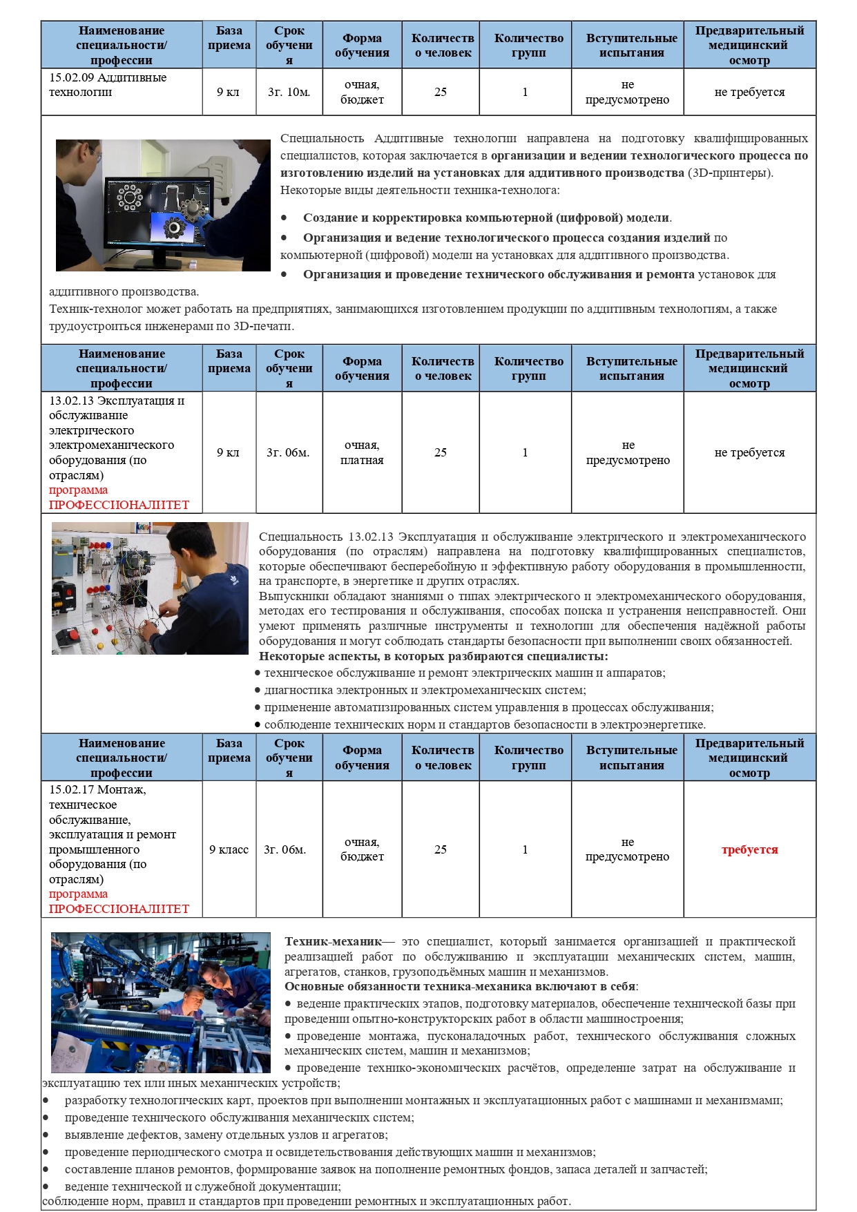 08.02.09 Монтаж, наладка и эксплуатация электрооборудования промышленных и гражданских зданий база приема: 9 классов финансирование: по договорам об оказании образовательных услуг |
