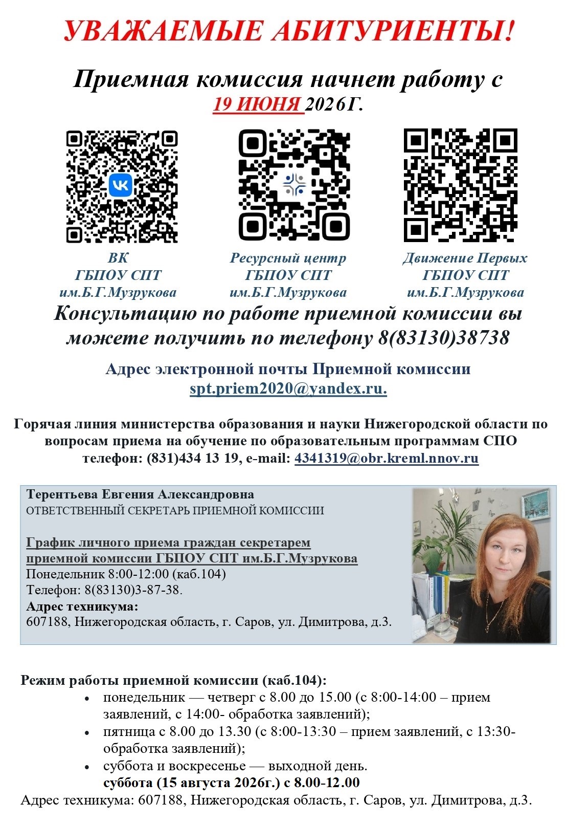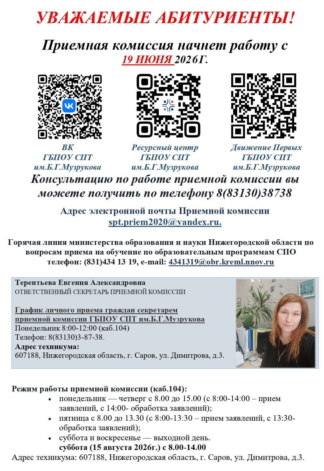 В 2026 году прием граждан в ГБПОУ СПТ им.Б.Г.Музрукова